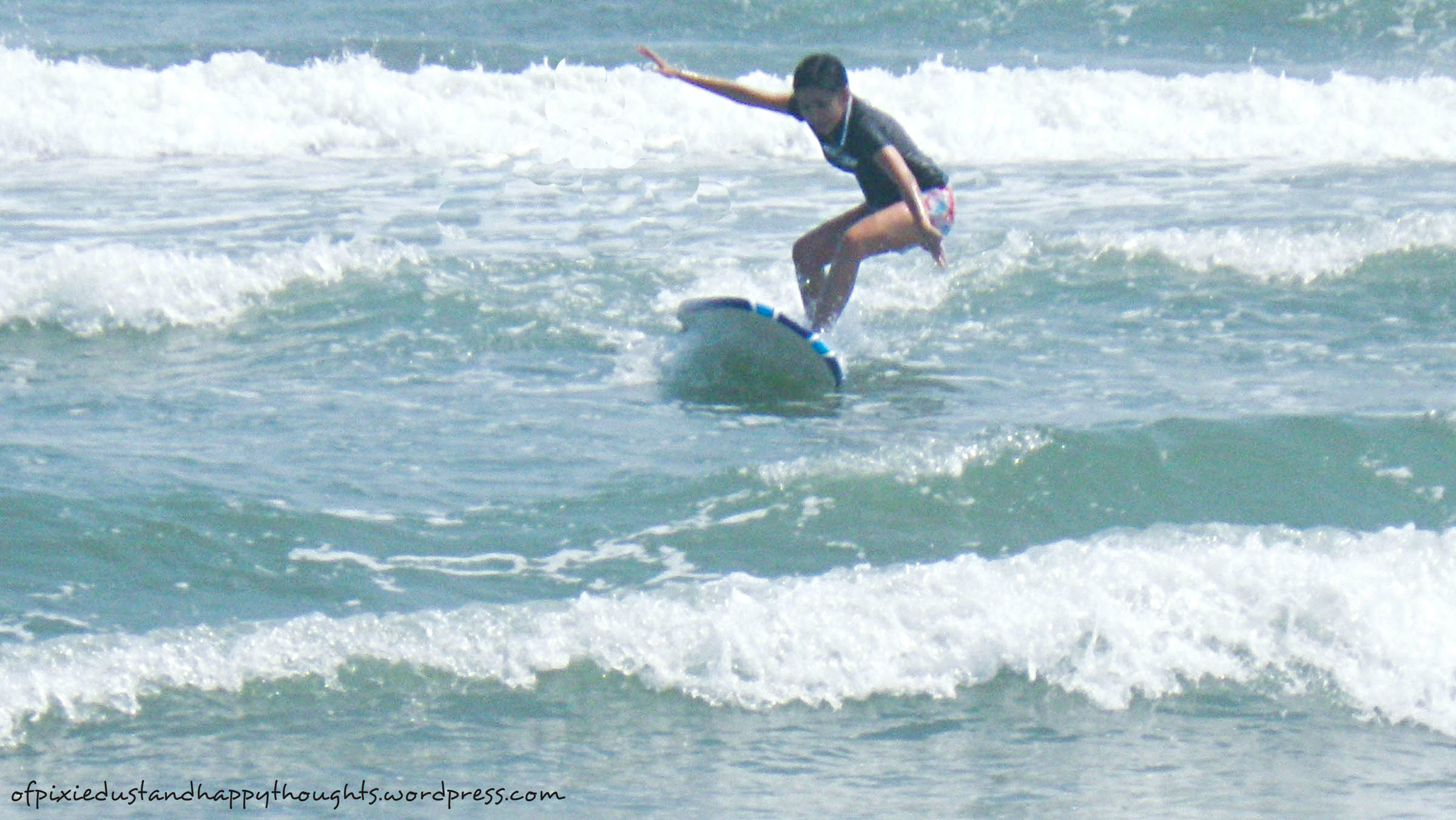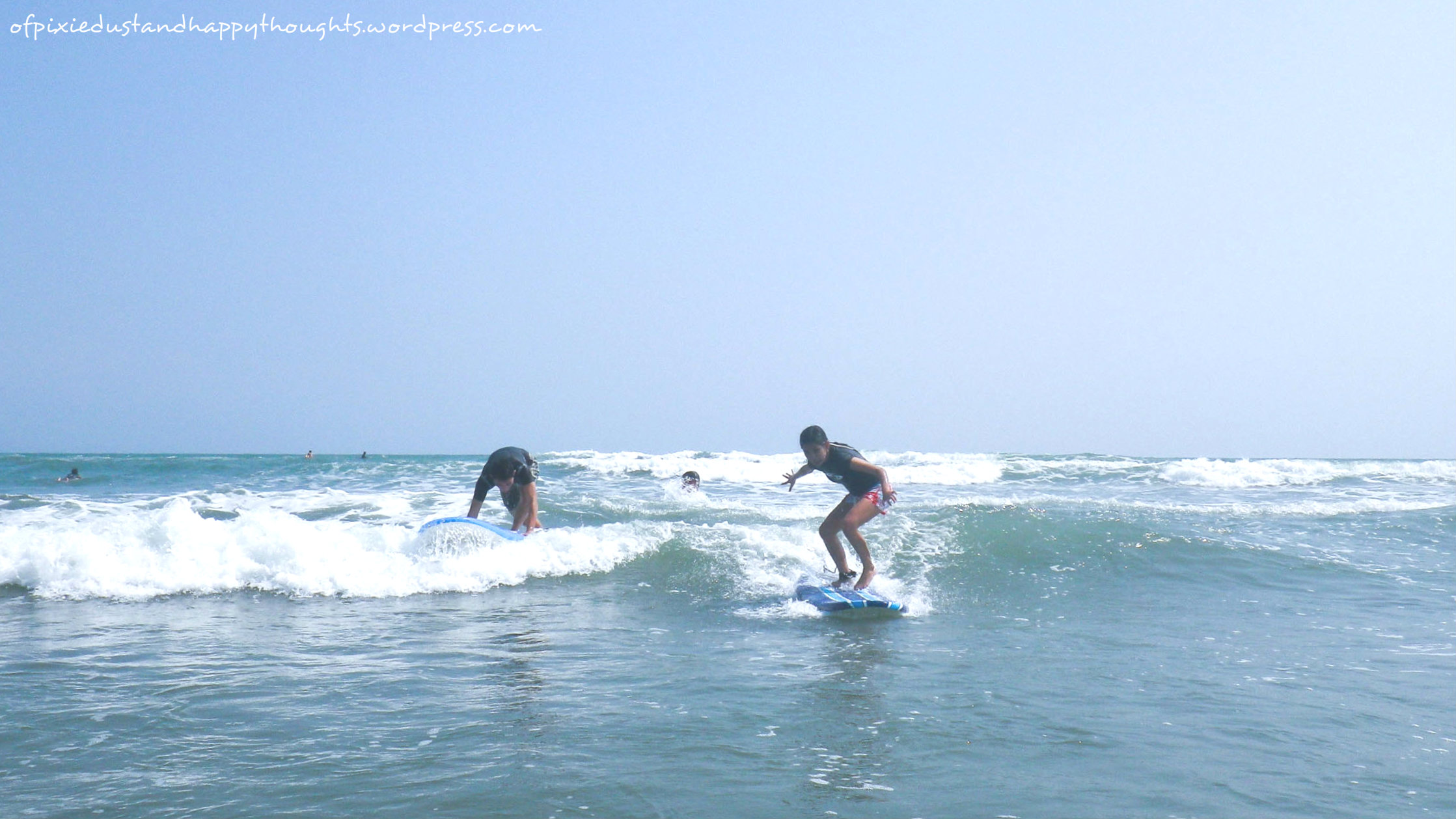 - Obviously, it’s best to surf in the morning when the waves are way calmer and just right for beginners. As I mentioned in my previous post, we got to surf again on our second day because of our little misadventure, which was a blessing in disguise in a way. On our second try, we finally got to “learn” to surf, or at least managed to stand on the surfboard for a couple of seconds before we were washed out. Haha!