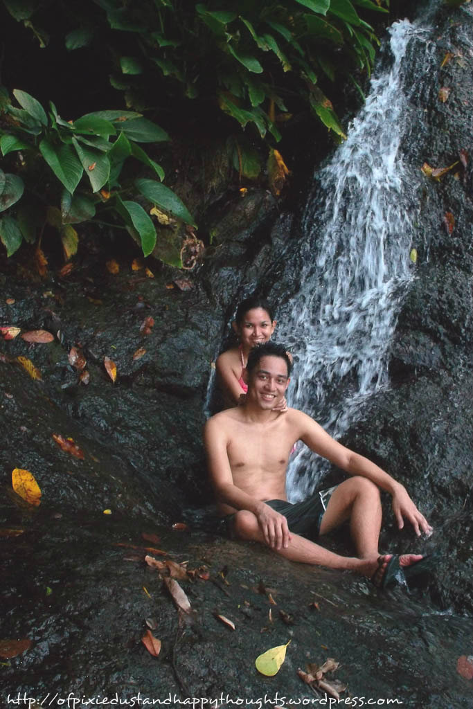 When we reached the falls, we somehow felt disappointed because there was only a scarce amount of water. We didn’t even manage to get ourselves wet from it; we had to deliberately soak ourselves in the little puddle from the falls.
