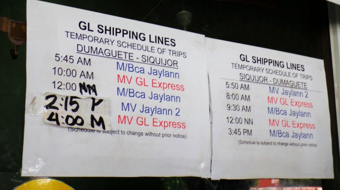 Go to Dumaguete Port (along Rizal Boulevard) to catch a ferry to Siquijor. Fare is Php 160, terminal fee is Php 15. Travel time is one hour. The earliest ferry leaves at 5:45 am.